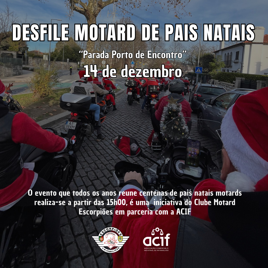 🎅🏼 Desfile Motard de Pais Natais 2025 – Vila Nova de Famalicão 🎄 O espírito natalício volta a acelerar pelas ruas de Vila Nova de Famalicão! 🚴♂️✨ O Clube Motard Escorpiões convida todos os amantes das duas rodas a participarem no Desfile Motard de Pais Natais 2025, um evento cheio…